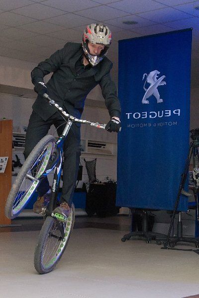 Внезапно вся идиллия прервалась. Прямо на глазах ожила погоня из фильма «Такси 3». Герой- велосипедист влетает в шоу- рум, выделывая невероятные для помещения прыжки и кульбиты, а вслед за ним в погоню пускаютя «хулиганы» на роликах. Но как и в фильме, спасает ситуациюPeugeot – а точнее, появившейся под аплодисменты всех присутствующих сверкающий 408-й, в багажнике которого Герой скрывается от злодеев.