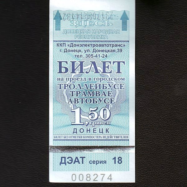 Фотографию нового билетика выложил один из жителей Донецка Александр Парецкий.