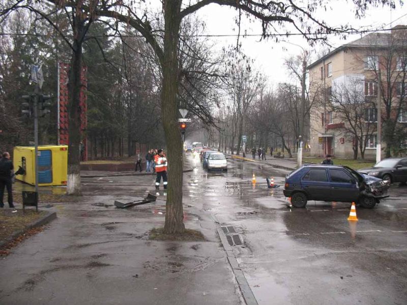 Вчера в 6 часов 20 минут в г. Харьков на перекрестке проспекта Орджоникидзе и улицы Мира водитель автомобиля Skoda Favorit, при выезде со второстепенной дороги на главную, не предоставил преимущество в движении и совершил столкновение с автобусом ''БАЗ - 2215 ''.