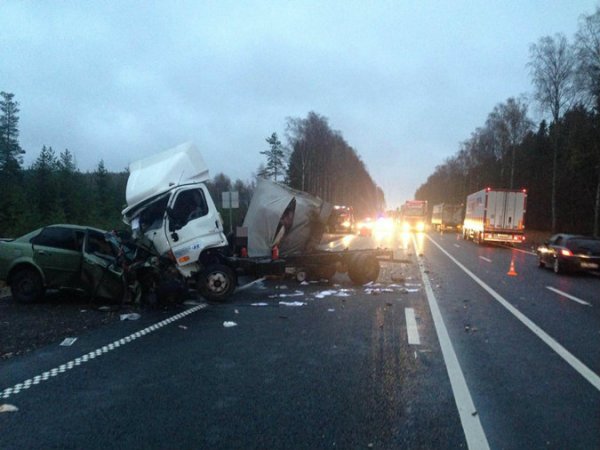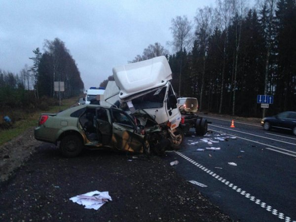 Вечером, 27 октября на российской автодороге М-10 легковушка "Шевроле Лачетти" выехала на встречную полосу и врезалась в грузовик "Хюндай", сообщает .