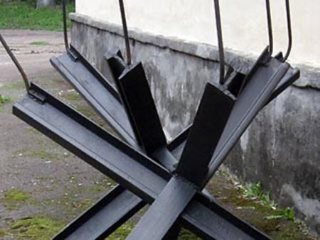 В Самаре вдоль трамвайных путей появилась первая партия противотанковых ''ежей'', раскрашенных в яркие желто-красные цвета, а около нее установлен большой щит с предупредительной надписью, сообщает .
