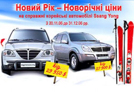 В торгово-сервисной сети Корпорации «АИС» - генерального дилера южнокорейской марки Ssang Yong – с 20 ноября до конца года внедорожники марки Ssang Yong предлагаются по специальной праздничной цене.