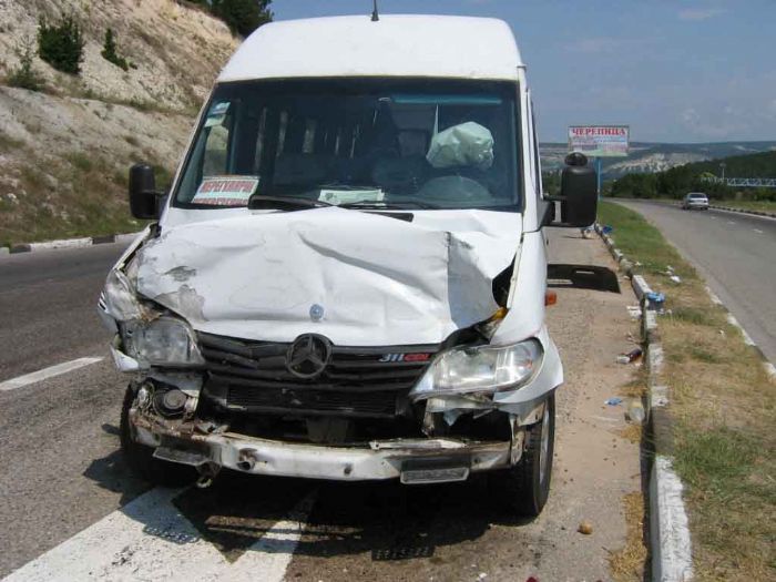 Вчера, около 10:00, на 7 км автодороги ''Севастополь - Инкерман'', водитель микроавтобуса ''Mercedes- Benz'' двигаясь в направлении г. Севастополя не учел дорожную обстановку и совершил столкновение с автобусом ''MAN'', который остановился впереди в крайней правой полосе.