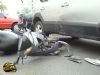 По словам свидетелей происшествия, внедорожник с девушкой за рулем двигался в левой полосе со скоростью около 80 км/ч. Внезапно водитель Toyota решила перестроиться правее, однако, не заметив скутер, ударила его правым передним крылом и передним бампером. От удара двухколесное транспортное средство отбросило метров на 8, а его водителя спас шлем – он разбился вдребезги, но сберег скутеристу голову. Водитель Land Cruiser от комментариев отказалась.