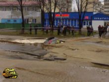 По словам коммунальщиком, прорвало трубу с холодной водой. В результате подмыва асфальт не выдержал и провалился. Вместе с ним под воду ушел припаркованный автомобиль. Теперь, кроме многочисленных ям на дорогах, автомобилистам следует обращать внимание на колодцы и прочие кратеры.