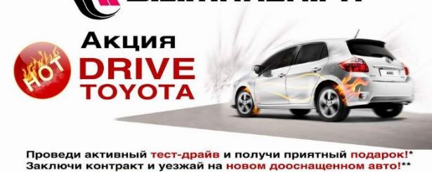 Убедиться в непревзойденном качестве и отменных ходовых характеристиках TOYOTA можно еще до покупки, опробовав будущий автомобиль на практике во время акции «НОT DRIVE TOYOTA!». Принять участие в акции «можно всей семьей, получив не только хорошие впечатления, но и приятные полезные подарки*.