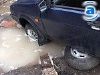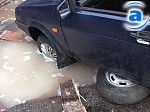 Водитель «девятки» говорит: даже не успел припарковаться - машина сразу ушла под землю. До магазина мобильной связи, куда спешил, не доехал несколько метров. На помощь пришел водитель автоцистерны с водой - несколько попыток, и «девятку» вытащили из ямы.
