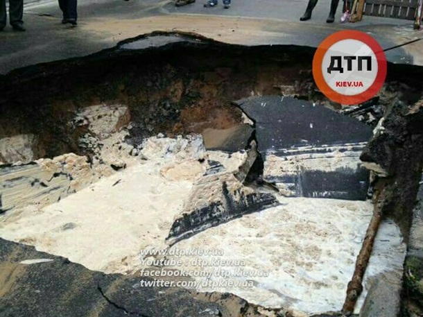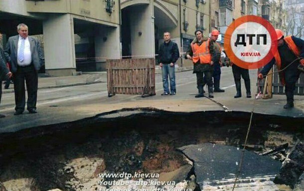 В центре Киева из-за провала перекрыли движение