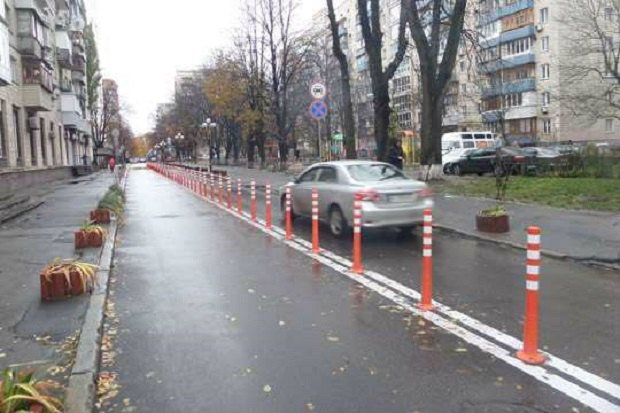 В центре Киева в рамках эксперимента установили ограничительные столбы для организации движения и парковки автомобилей.