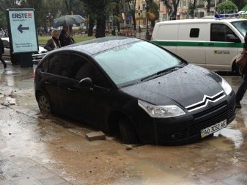 14 августа на проспекте Свободы в центре Львова автомобиль марки Citroen провалился в яму на тротуаре. Как сообщает корреспондент, на данный момент неизвестно что именно произошло на месте происшествия, сообщает .