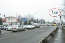 Один расторопный гаишник за день может выполнить план на год вперед. Мало того, со встречного направления (ул. Василенко) висит экспериментальная табличка с зеленой стрелочкой поворота, которая разрешает делать правый поворот при запрещающем сигнале светофора.