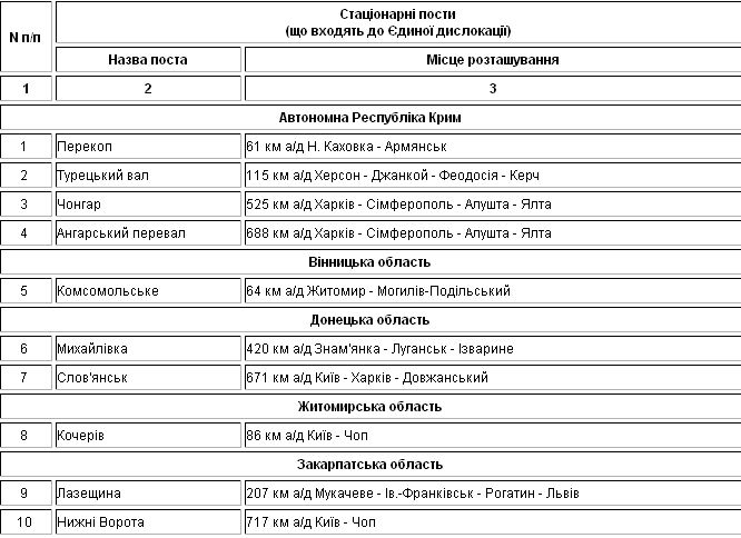 В Украине начали работать стационарные посты ГАИ. (Список)