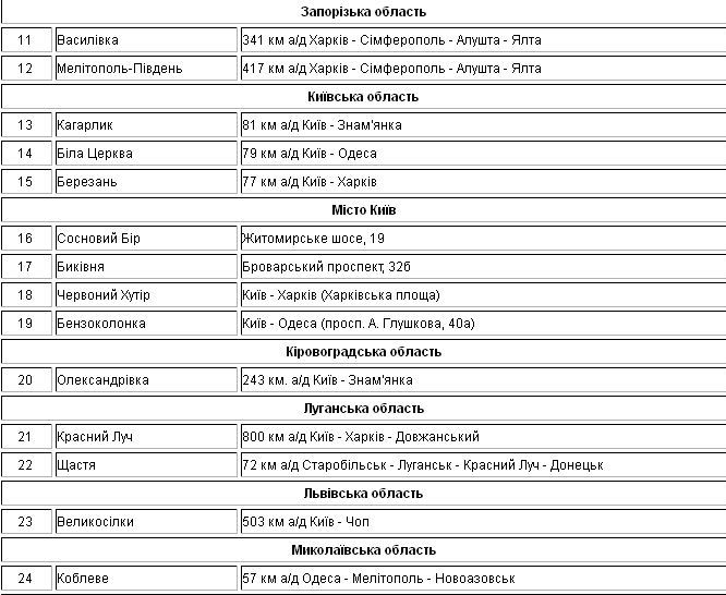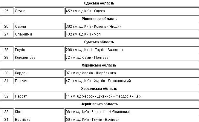 Дислокация стационарных постов дорожно-патрульной службы ГАИ :