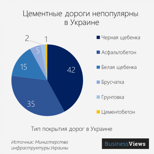 Зато опыт строительства и эксплуатации бетонных дорог есть у соседей в ЕС. В 2006 году компания из Германии построила в Грузии бетонную магистраль. Эта компания владеет в Украине цементными заводами и наверняка будет не против расширить свой бизнес в Украине.
