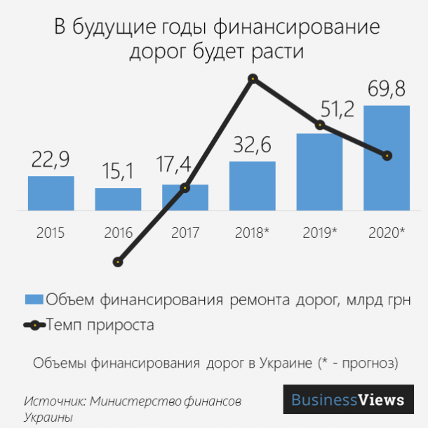 При этом Украина может себе позволить закупку цемента. На 2018 год объем финансирования дорог по сравнению с 2017 годом увеличится почти в два раза, а за следующие 2 года вырастет еще вдвое. Это позволит заниматься не только текущим ремонтом, но проводить реконструкцию и строить новые дороги. Причем определен не только объем расходов, но и источники финансирования. Деньги в дорожную отрасль начнут поступать из Дорожного фонда, начавшего работу с 1 января 2018 года, из средств, полученных с помощью таможенного эксперимента, от международных финансовых институтов. Должен заработать и закон о концессиях.