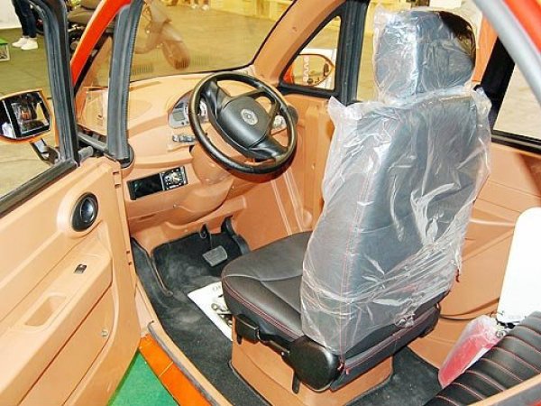 Rover Quick 2000 формально является 2-местным, но места здесь по-мотоциклетному расположены друг за другом. В остальном – это уже автомобиль. Он имеет кабину с дверями, стеклоочиститель, светотехнику и даже автомагнитолу. В комплектацию также входит камера заднего вида. Длина электромобильчика – 2300 мм, а ширина всего 1190 мм. Весит Rover Quick-2000 всего 453 кг.