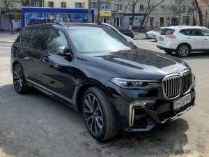 Снимки BMW X7 2019 прислали из Одессы. Причем, засняли самую дорогую версию M50d за 2,8 млн. гривен. Отличить ее можно по обвесу и 21-дюймовым литым дискам.
