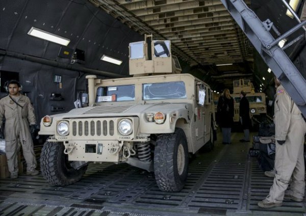 В Украину прилетел самолет с американскими внедорожниками Humvee. (Фото)