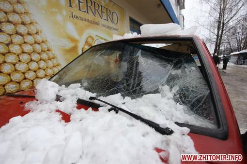 27 декабря на улице Витрука в Житомире упавшая с крыши 5-этажного дома глыба льда повредила легковую машину. Водитель припарковал авто на стоянке у магазина и отправился с детьми за покупками, сообщает .