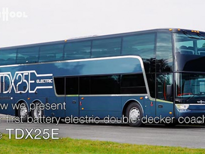 Бельгийский автопроизводитель Van Hool к своему 75-летнему юбилею представил двухэтажный туристический автобус TDX25E, оснащенный электрической силовой установкой. Это первый в мире электрический автобус двухэтажной архитектуры, сообщает .