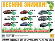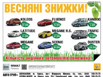 Только с 1 по 31 марта 2013 года в официальном дилерском центре RENAULT ООО «АВТО ГРУП+» действуют весенние скидки на автомобили RENAULT 2012 модельного года!