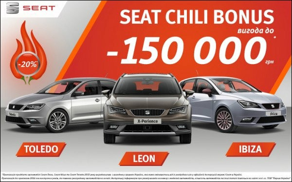 Компания Авто-Киев, официальный дилер автомобилей SEAT в Украине, объявляет полную распродажу моделей SEAT Ibiza, SEAT Toledo, SEAT Leon и SEAT Leon X-Perience 2015 года выпуска с выгодой для клиента до 150 000 грн!.