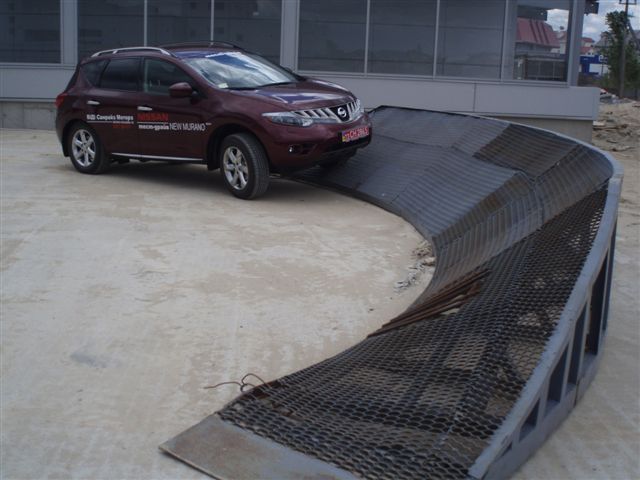 Площадка состоит из искусственных препятствий, которые имитируют бездорожье различной степени сложности. Ее общая площадь составляет 1480 м. На ней сооружены металлические препятствия, такие как большая и малая горки (высота 3,5 и 2 метра), большой и малый наклонный траверс, препятствие "бордюры", препятствие для диагонального вывешивания, а также препятствие "качели", на котором Клиенты могут оценить сбалансированность подвески внедорожников Nissan.