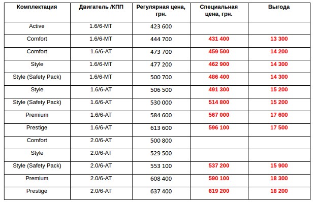 * Акція на автомобілі 2019 р.в. триватиме до 28 грудня 2019 року в автоцентрі «Паритет». Вказана вартість актуальна станом на 07.12.19. ПДВ враховано. Вартість може бути змінена без попереднього інформування покупців
