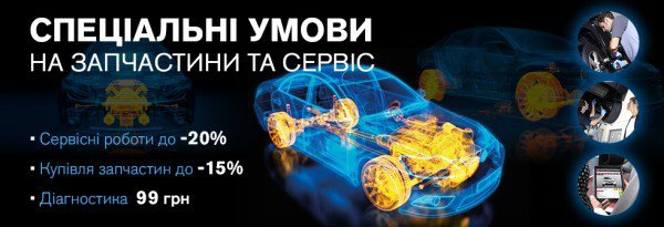 - Знижка 20% на сервісні роботи за результатами діагностики.
