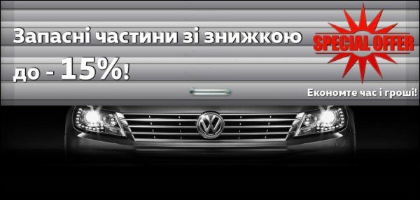 Гарна новина для власників автомобілів Volkswagen — вигода на запасні частини до -15%.