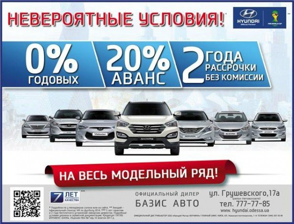 Только в этом месяце действует особенно выгодное акционное кредитное предложение на автомобили HYUNDAI. В Автоцентре HYUNDAI Вас ждет большой выбор первоначальных взносов и сниженные ставки.