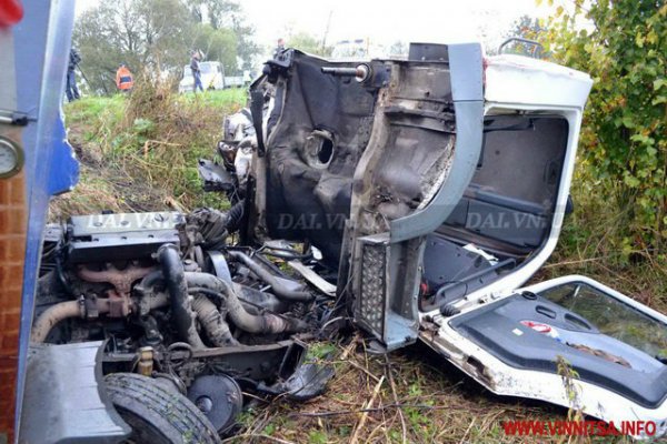 Винница: Volkswagen Golf лоб в лоб столкнулся с грузовиком. Погиб молодой водитель. (Фото)