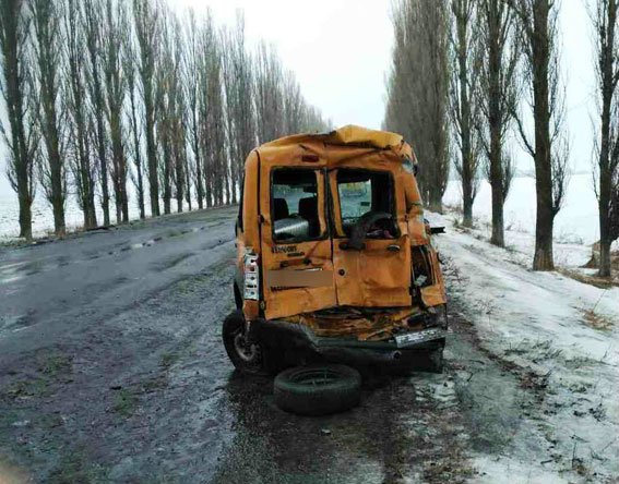 На участке трассы близ села Степанки Мурованокуриловецкого района водитель автобуса «МАН» не справился с управлением из-за гололеда и въехал в багажное отделение легковушки. От удара «Форд Коннект» выехал на встречную полосу движения и столкнулся с микроавтобусом «Мерседес Спринтер» и автобусом «МАН». В свою очередь автобус «Сетра» слетел с трассы и въехал в дерево.
