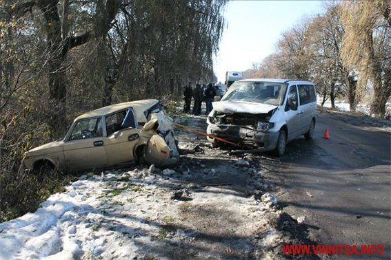 Как рассказал первый заместитель начальника областной милиции Винницкой области Юрий Педос, предварительно установлено, что автопроисшествие произошло вследствие неисправности автомобиля ВАЗ 2106, которым управлял 35-летний житель г. Умань. Во время движения в ВАЗе отлетело заднее колесо, и его «выбросило» на полосу встречного движения, где в это время ехал автомобиль Mercedes Vito.