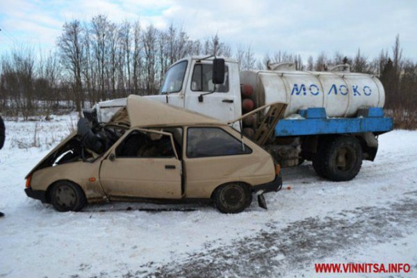 9 января на автодороге «Фастов-Шпиков» в селе Большая Вулыга автомобиль ЗАЗ-1102 столкнулся с молоковозом. В результате аварии на месте происшествия погибла пассажирка «ЗАЗа» и два человека получили телесные повреждения, сообщает .