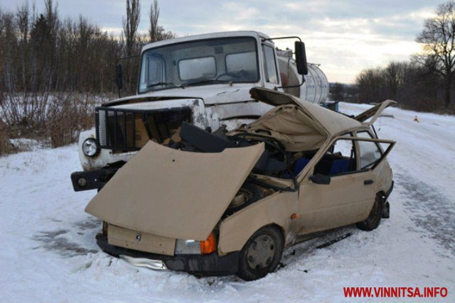 Винницкая область: водитель на ЗАЗ "Таврии" влетел под грузовик и убил свою тещу. (Фото)