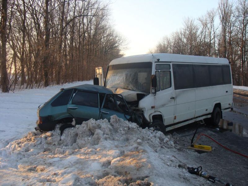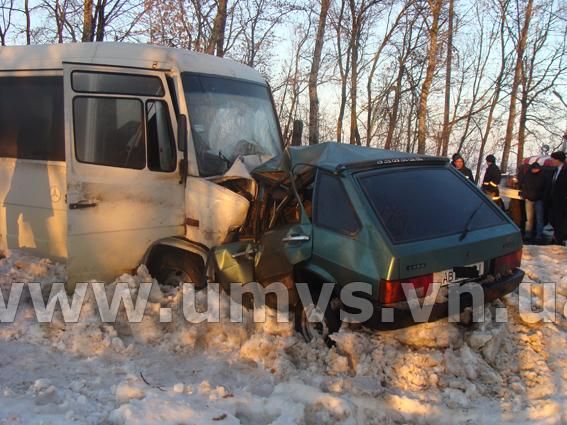 Дорожно-транспортное происшествие произошло 27 декабря, около 14:00, на автодороге Кременец-Белая Церковь, недалеко от поселка Пляховая Козятинского района Винницкой области. На трассе лоб в лоб столкнулись ВАЗ 2109 и микроавтобус Mercedes-Benz.