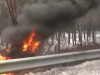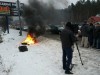 Люди заблокировали две полосы движения, подожгли шины. Здесь в основном автомобили с иностранной регистрацией: литовскими, польскими, словацкими номерами.