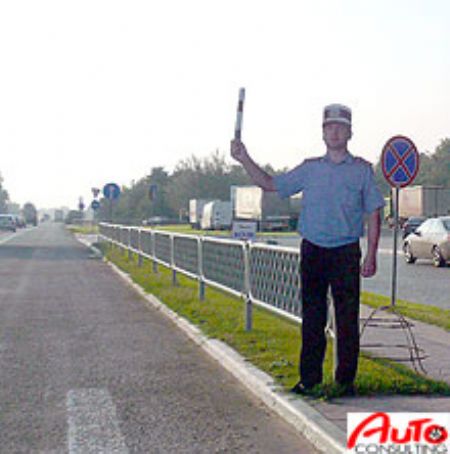 В Херсонской области (район Цюрюпинска) установили довольно качественный муляж, который в свете фар, особенно на большой скорости, действует безукоризненно. После того, как фигурка «гаишника» с поднятым жезлом попадает в поле зрения, скорость невольно снижаешь.