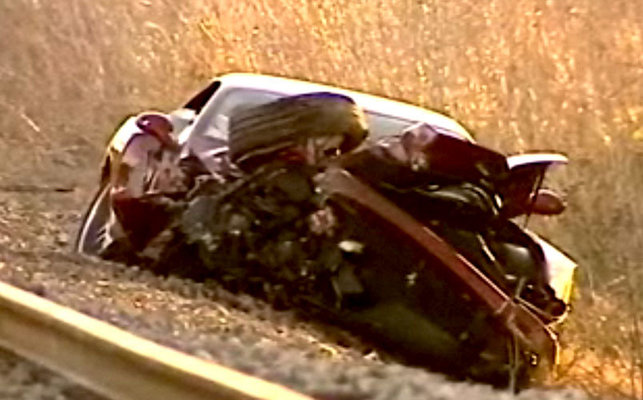 Находясь в изрядном подпитии, Саболд, не сумев преодолеть железнодорожную колею, застрял на путях и вместо того, чтобы выскочить из суперкара, поскольку впереди маячил приближающийся поезд, стал названивать в службу спасения. У диспетчера "911" хватило самообладания уговорить незадачливого водителя немедленно покинуть автомобиль. Через несколько десятков секунд Ferrari был смят идущим поездом.