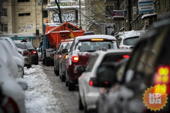 В воскресенье, 13 ноября, застрявшие фуры блокировали движение транспорта на оживленных улицах Киева. Чтобы сдвинуть с места грузовики, на место прибывали даже пожарные машины.