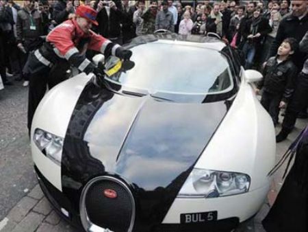 Появление перед супермаркетом в британском городе Манчестер суперкара Bugatti Veyron сразу собрало толпу любопытствующих, которая радостными возгласами приветствовала появление полиции, и последовавшую затем процедуру выписки штрафной квитанции за неправильную парковку, сообщает .