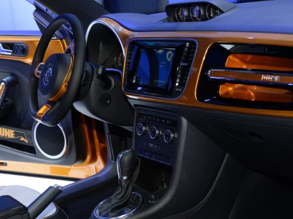 Что касается интерьера, то он почти полностью совпадает с интерьером серийного "Жука". Концепт может похвастать двуцветными спортивными креслами, 7,7-дюймовым монитором мультимедийной системы и соответствующими шильдиками.