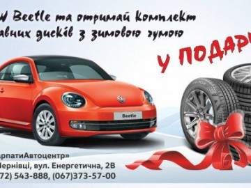 Автосалон «КарпатиАвтоцентр» піклується про кожного автолюбителя Volkswagen Beetle – при купівлі Volkswagen Beetle в комплектації Summer Life отримуєте комплект легкосплавних дисків із зимовою гумою додатково в подарунок до привабливої цінової пропозиції!.