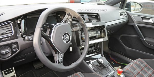 В салоне заметен селектор трансмиссии, позаимствованный у нового «Туарега», а также несколько больших дисплеев. Восьмой «Гольф», как и «младшая» модель Polo, будет предлагаться с полностью цифровой приборной панелью.
