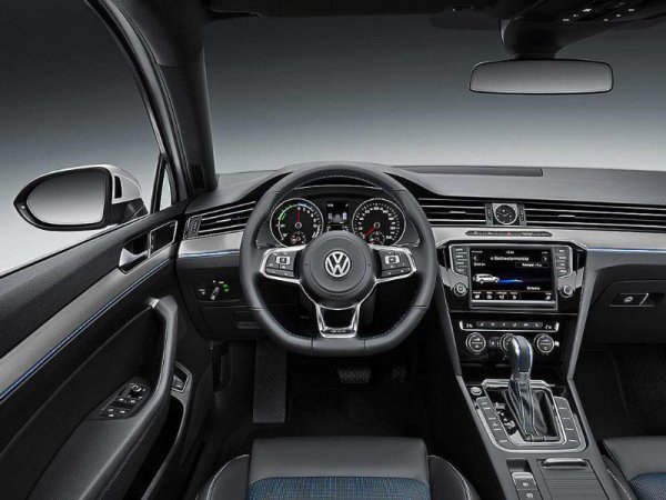 Получил VW Passat GTE и некоторые внешние гибридные признаки. Так, он будет комплектоваться более крупными, чем стандартный седан, колесными дисками и иным передним бампером со светодиодными вкраплениями, а радиаторная решетка гибрида украшена синими акцентами, намекающими на его дружественное отношение к окружающей среде. В интерьере появятся также синяя атмосферная подсветка и модернизированный рычаг переключения передач.