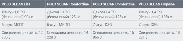 Пропонуємо Вам наступні комплектації нового Volkswagen POLO SEDAN: