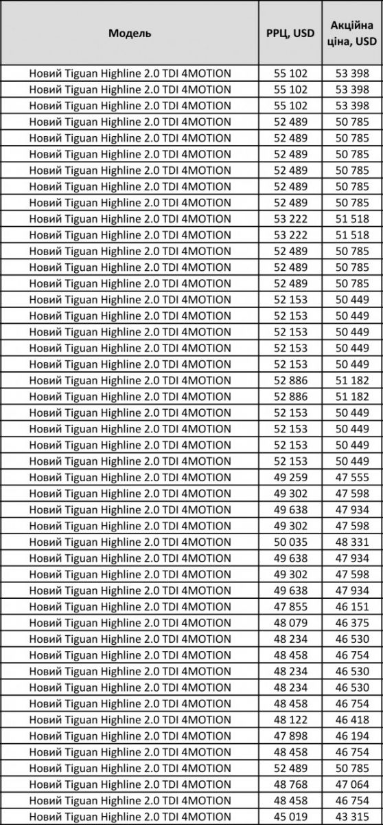 Новий Tiguan із двигуном 2.0 TDI на 190 к.с. доступний у комплектації Highline.
