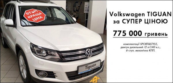 З радістю повідомляємо, Автомир підготував для Вас ексклюзивну пропозицію на купівлю Volkswagen TIGUAN. Tiguan в комплектації SPORT&STYLE, колір кузова - білий лак, двигун дизельний / 2 л / 140 к.с. / 6-ступ. механічна КПП.