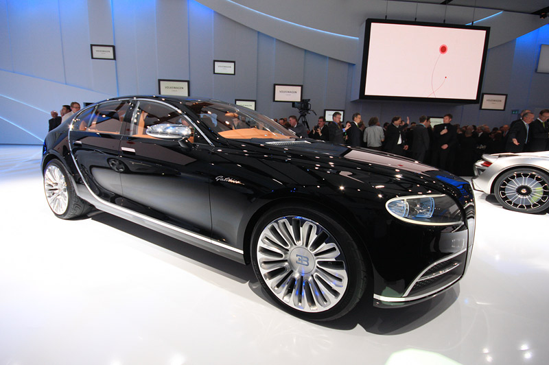 Кузов автомобиля создан с применением карбона и алюминия, а в моторном отсеке авто установлен дефорсированный с 1001 до 800 лошадиных сил восьмилитровый двигатель W16 от суперкара Veyron, в котором вместо четырех турбокомпрессоров используются приводные нагнетатели. По данным производителя, максимальная скорость седана Bugatti составит около 350 километров в час.